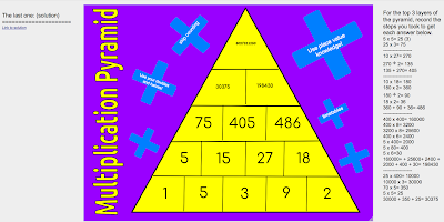 Hi guys in this piece of work I have done a multiplication pyramid. I have solved 6 of the top number. It was really hard to get the top one. I even had to solve it on a bigger doc. It was a hard piece of work and I worked with my friend Tidus. We had problem solving it out but we managed to solve it out.